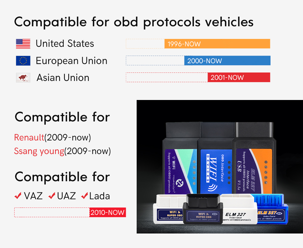 NOTE: Even though it compatible with most cars, but different regions support the vehicle OBD2 protocol at different times, or some car is spercial design, so it may not compatible with some cars which do not support OBD2 protocol.