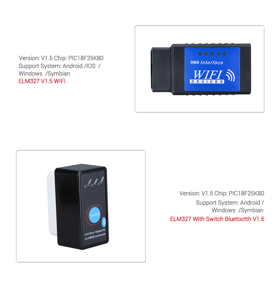 ELM327 V1.5 Wifi OBD2 OBDII Auto Code Reader pic18f25k80