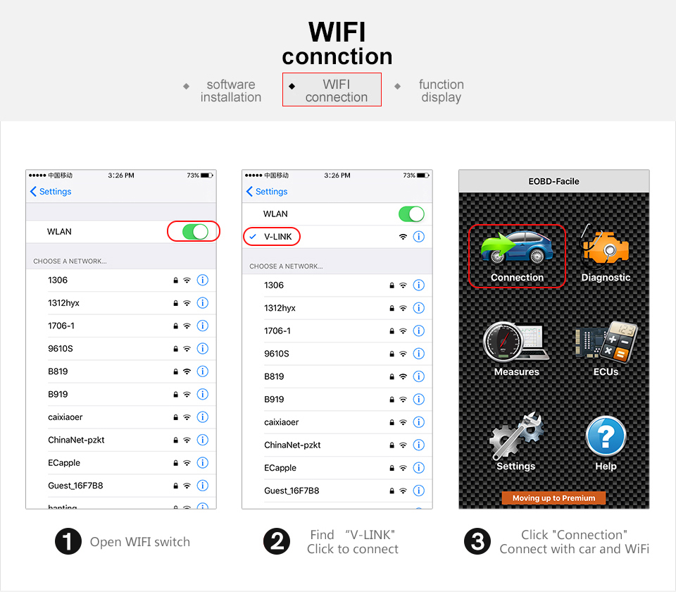 1. Wireless scanning for tool, support all OBD2 protocols